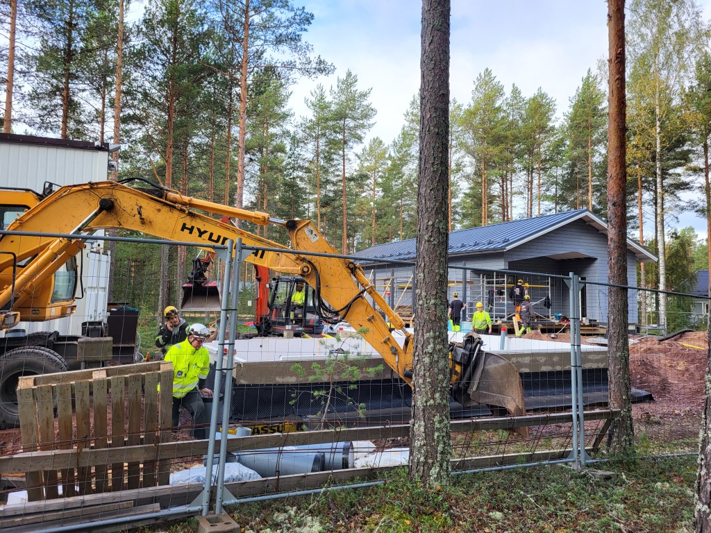 Sataedun kahdella omakotityömaalla oli tänään torstaina 21.9. vipinää. Omakotityömailla rakennettiin terassia, kaivettiin salaojia ja tehtiin keittiössä sähköasennuksia. Yhteistyössä on voimaa, todellista supervoimaa!