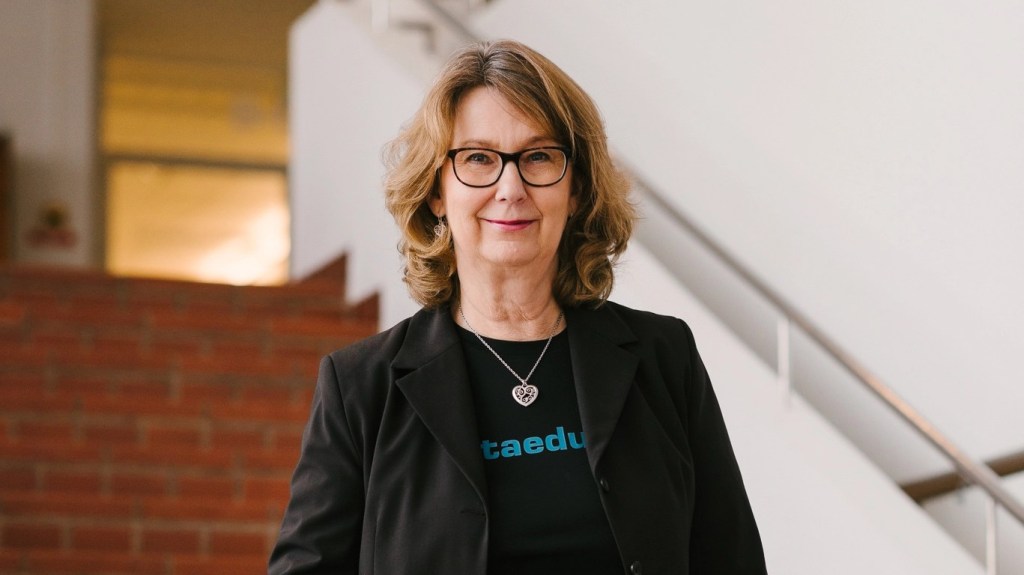 Sataedun oppisopimuskoordinaattori Merja Tuomola vastaa kysymyksiin oppisopimuksesta Sataedu Kokemäki päärakennuksen aulassa tiistaina 3.10.2023 klo 10.30-12.