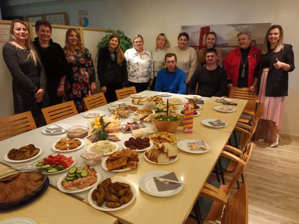 Perjantai huipentui juhlapukeutumiseen. Sataedun Huittisten toimipaikassa teemaviikon päättymistä juhlistettiin myös herkuttelemalla.
