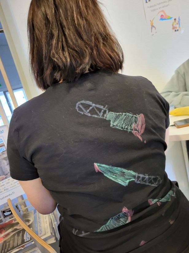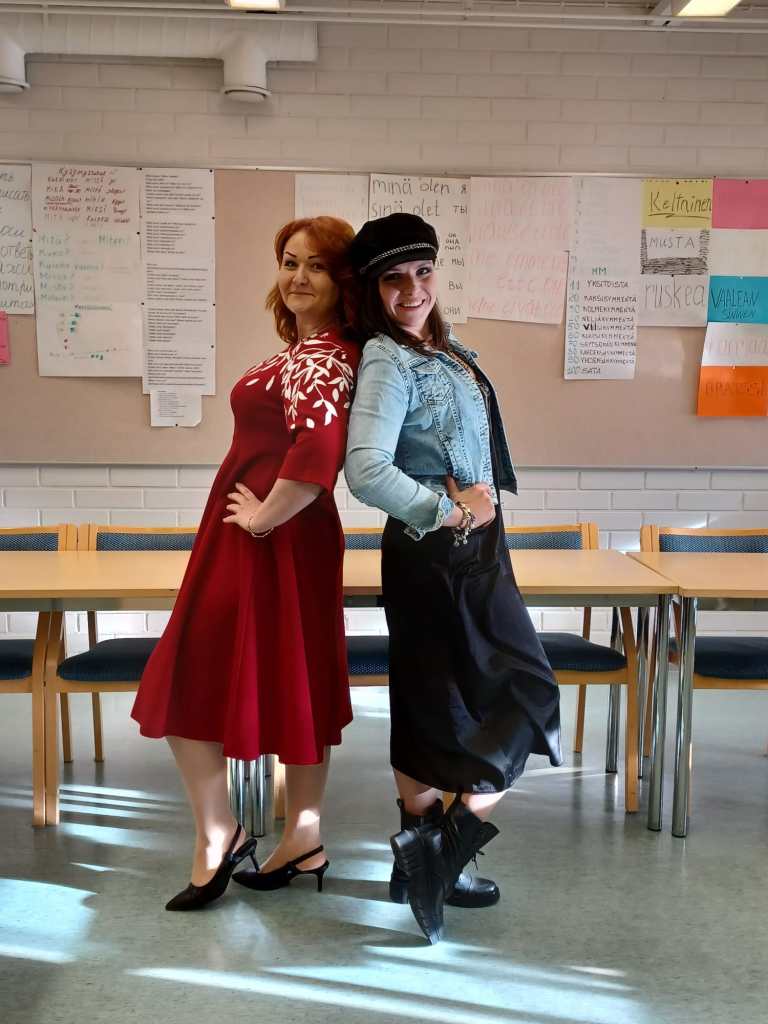 – Pukeutumisen teemaviikko on ollut hauska ja teemaviikko vei opiskelijoiden huomiota pois koestressistä. Yritin linkittää teemaviikon hyvin vahvasti suomen kielen opetukseen.