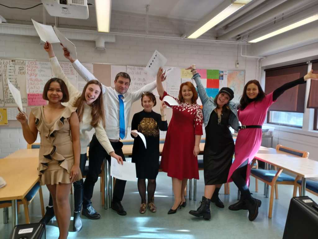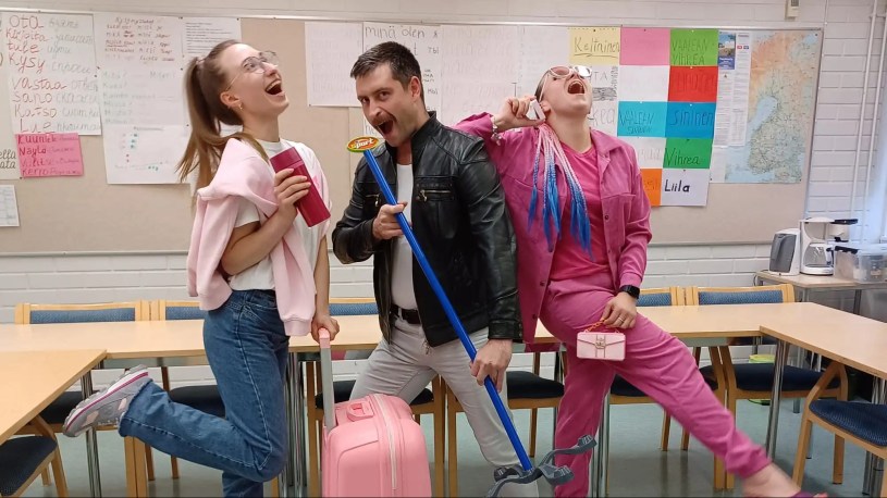 – Keskiviikkona, muistelimme laulua, jonka opiskelimme suomen kielen koulutuksen alussa. Videolta näette, onnistuuko tanssi vai ei. Opiskelijoilla oli koko päivän kestävä kirjallinen koe, joten jännitystä oli ilmassa, kertoo opettaja Elena Närhinen.
