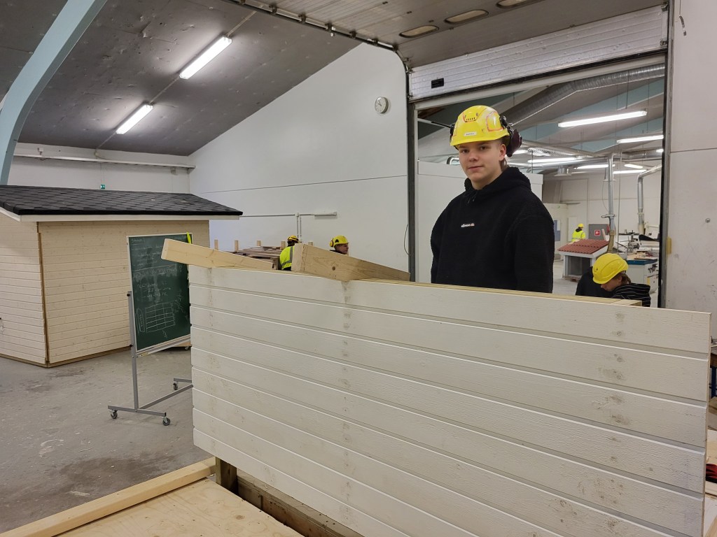 Tänä syksynä olen rakentanut muun muassa varastokoppeja, roskakatoksia, autotallin kattotuolielemenettejä ja aitaelementtejä. Parhaillaan teen yhteen taloyhtiöön postilaatikkotelinettä, kertoo toisen vuoden talonrakentajaopiskelija Joona Kaivola.