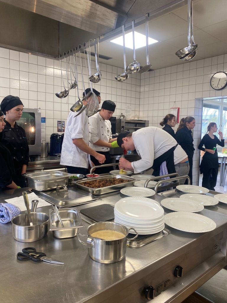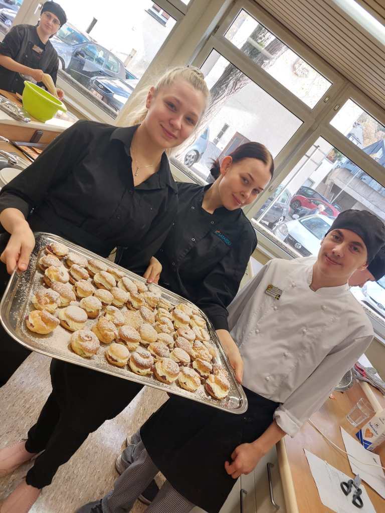 Mielenkiintoisinta on ollut työskennellä saksalaisten ja ruotsalaisten kokkiopiskelijoiden kanssa opetuskeittiöllä. Olemme kaikki saaneet uusia kavereita, kertoo opiskelija Sara Tuomi.