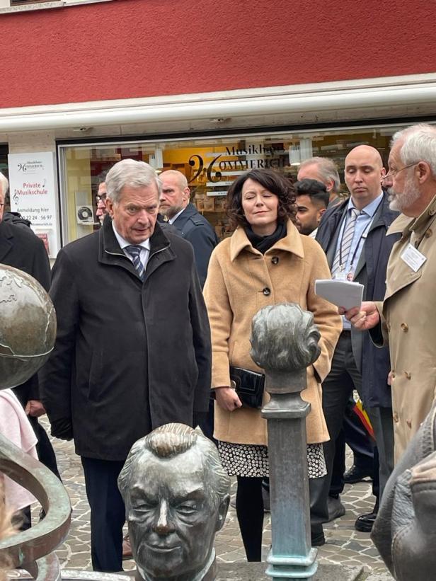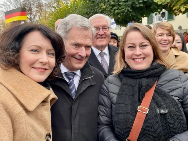KV-vaihdossa olevat Sataedun ravintola-alan opiskelijat ja opettajat tapasivat tänään torstaina Saksassa Unkelin vanhassakaupungissa Suomen tasavallan presidentti Sauli Niinistön ja tasavallan presidentin puolison, tohtori Jenni Haukion.