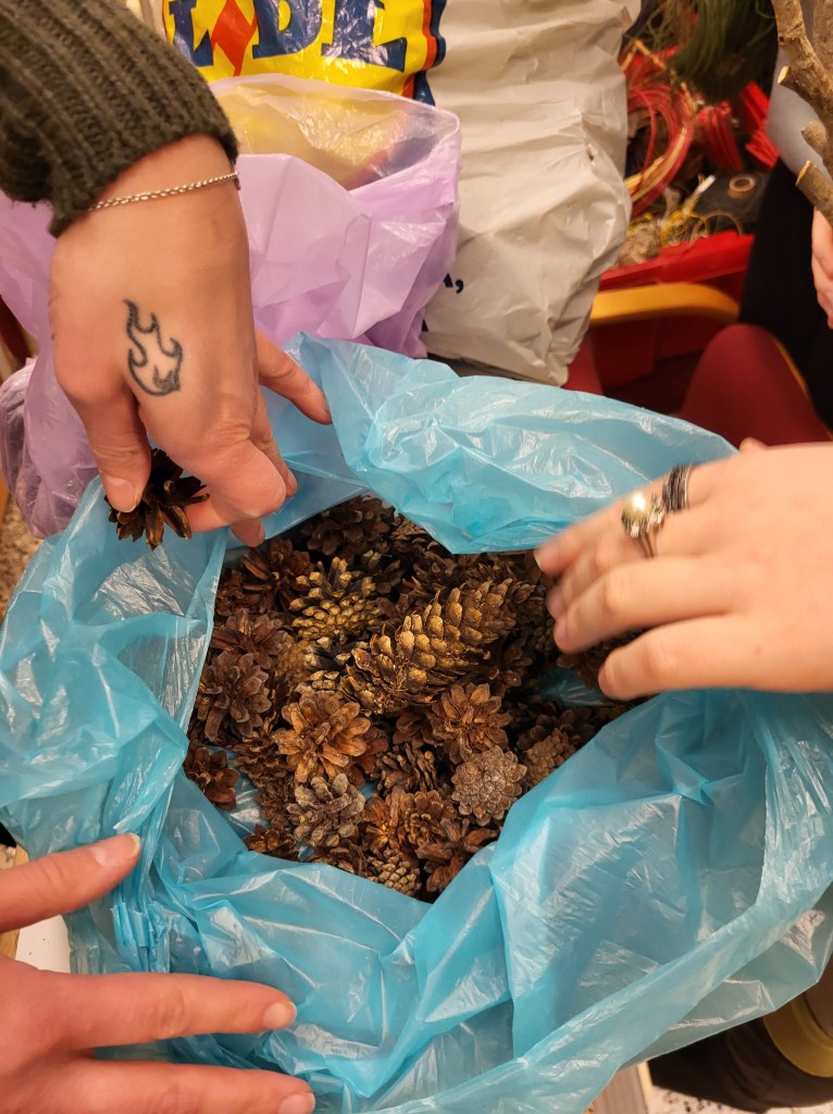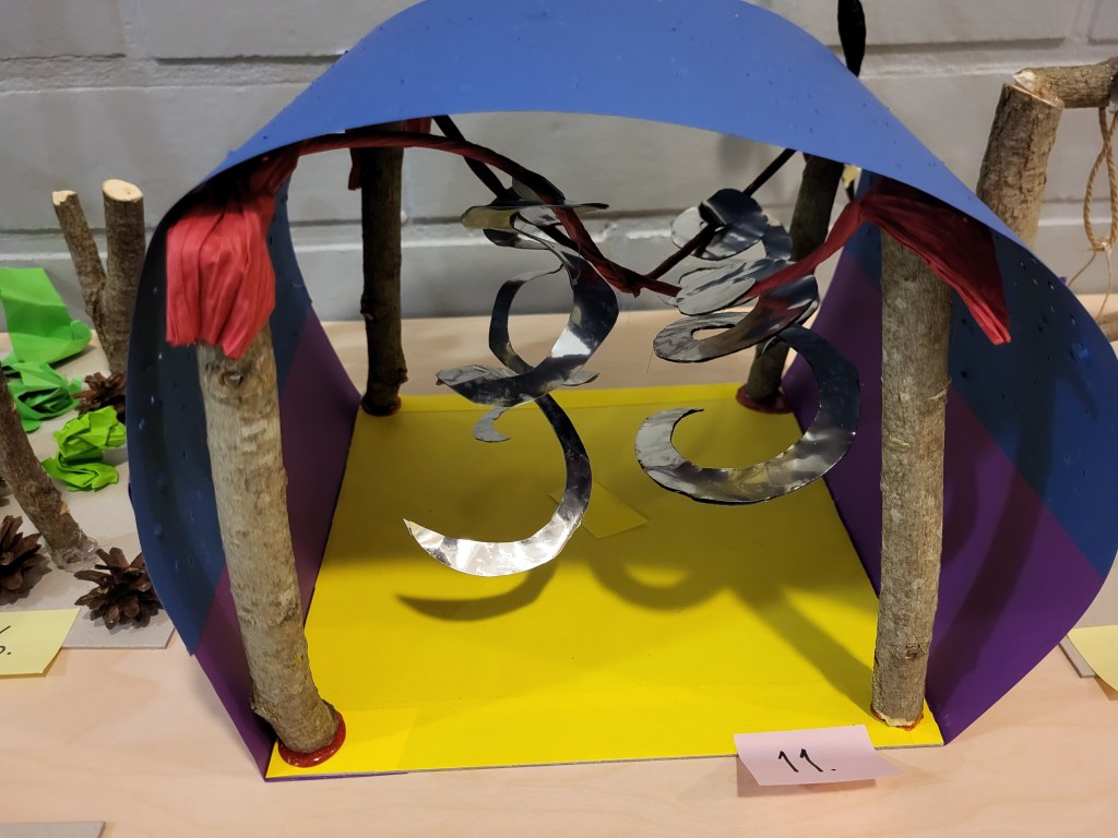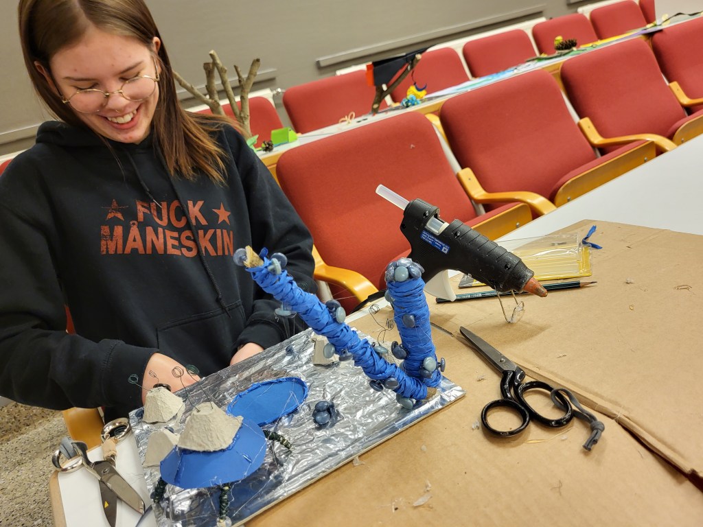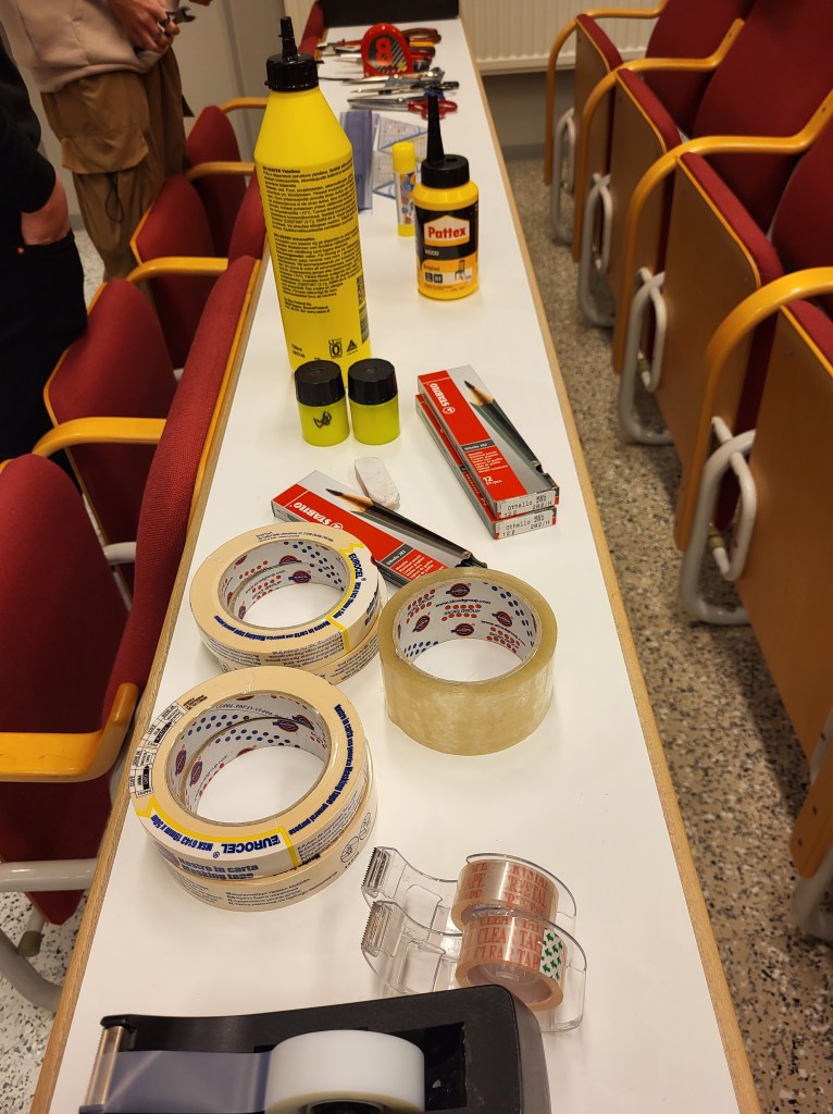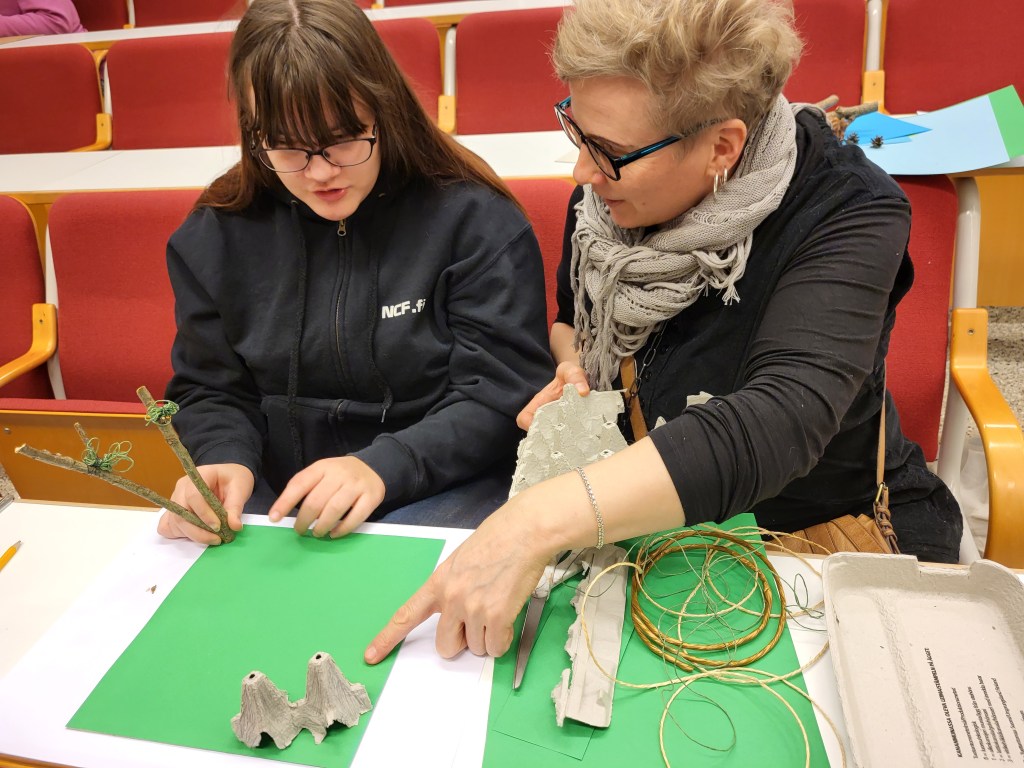 Taidetta kahdessa tunnissa -työpajaa ohjasi taideteollisuusalan opettaja Taina Vuorela. Paja oli erittäin suosittu ja opiskelijoita opettajineen sekä ohjaajineen oli runsaasti paikalla.