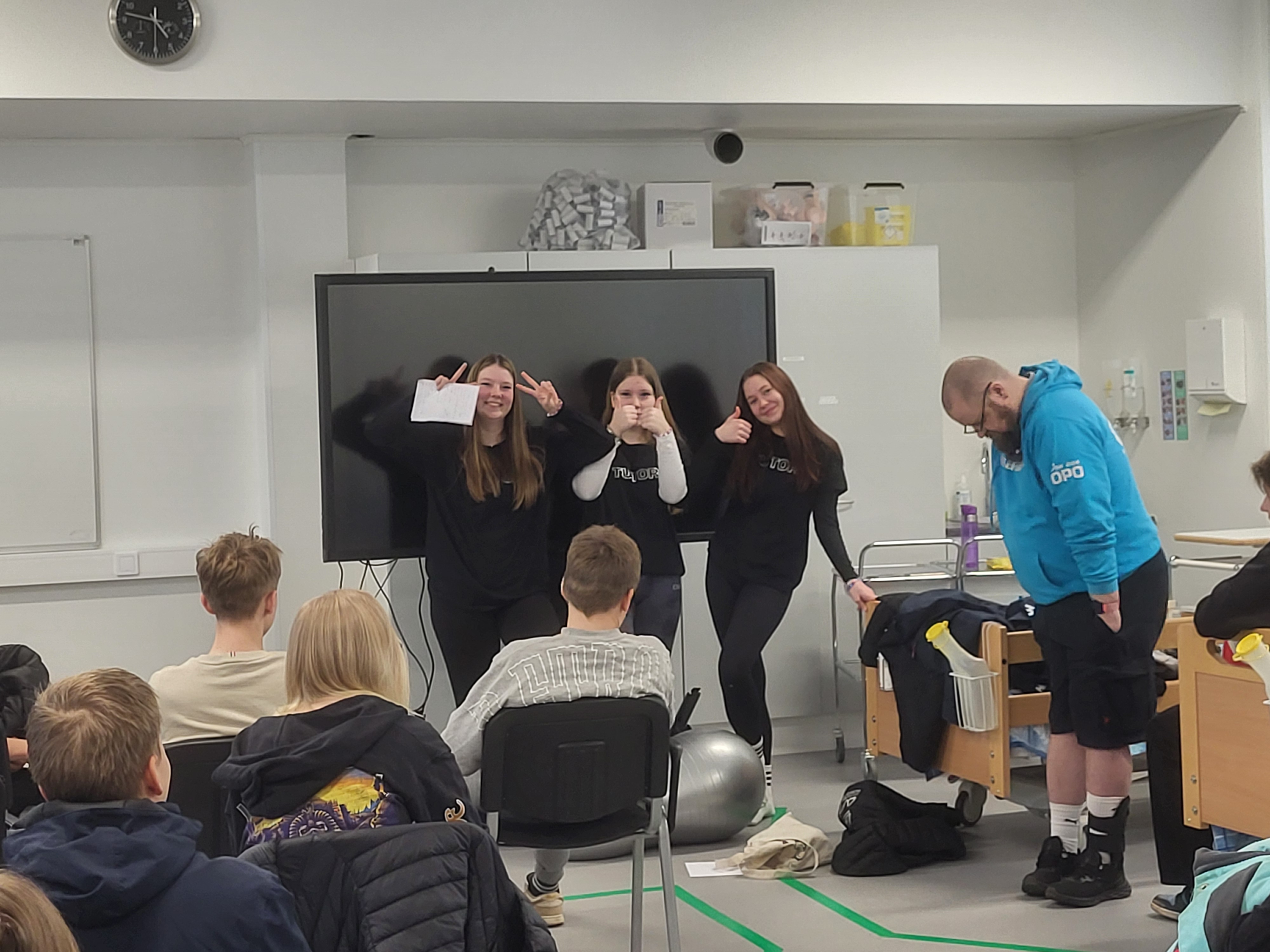 Peruskoulun oppilaita oli opastamassa Sataedun ensimmäisen ja toisen vuoden opiskelijat.