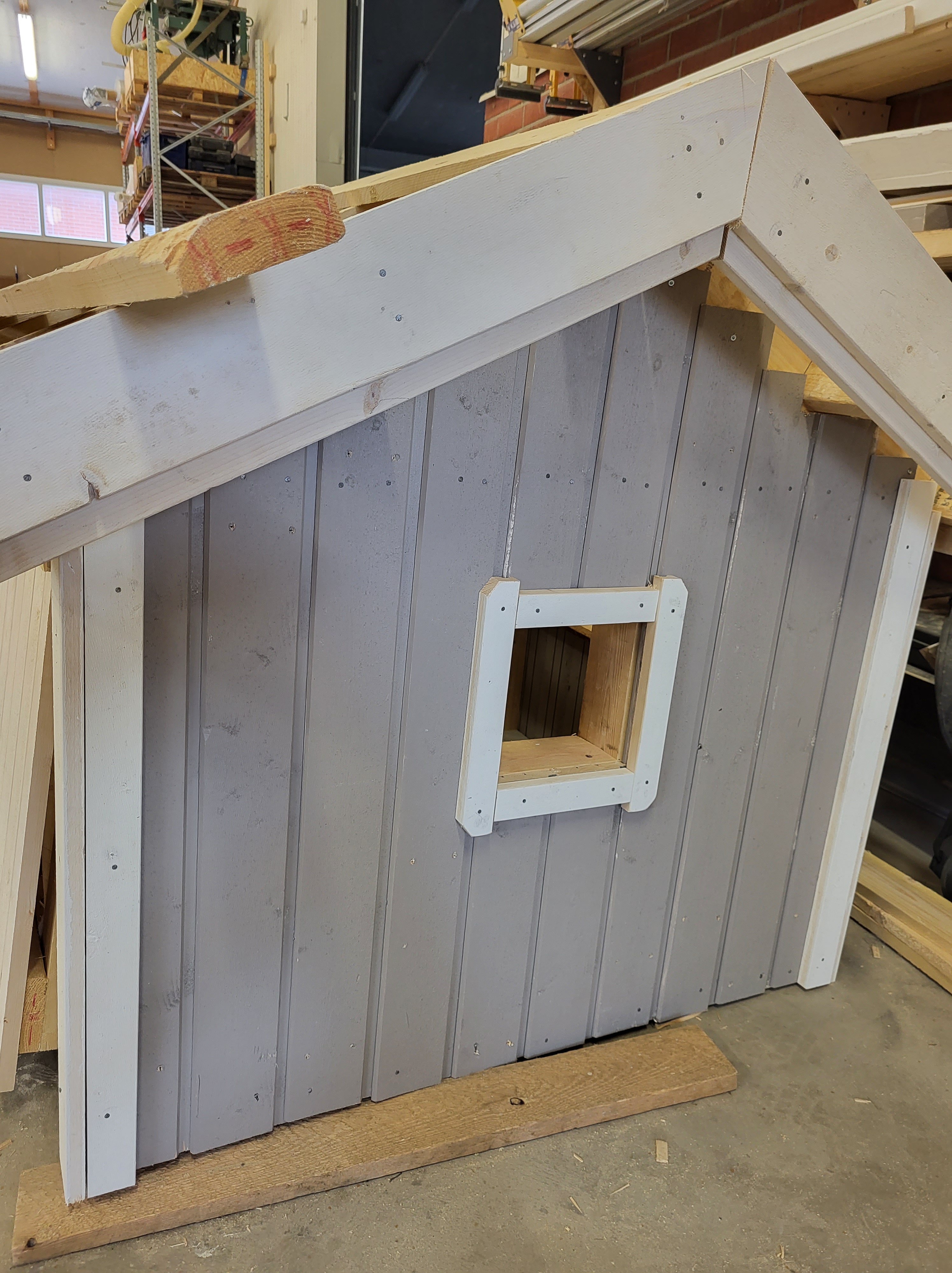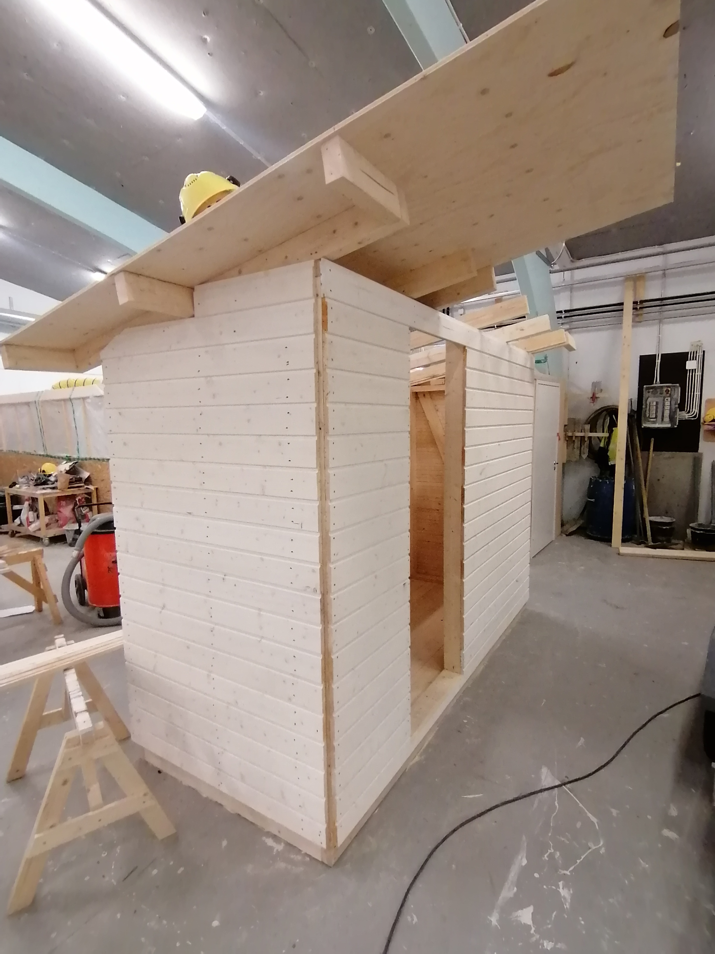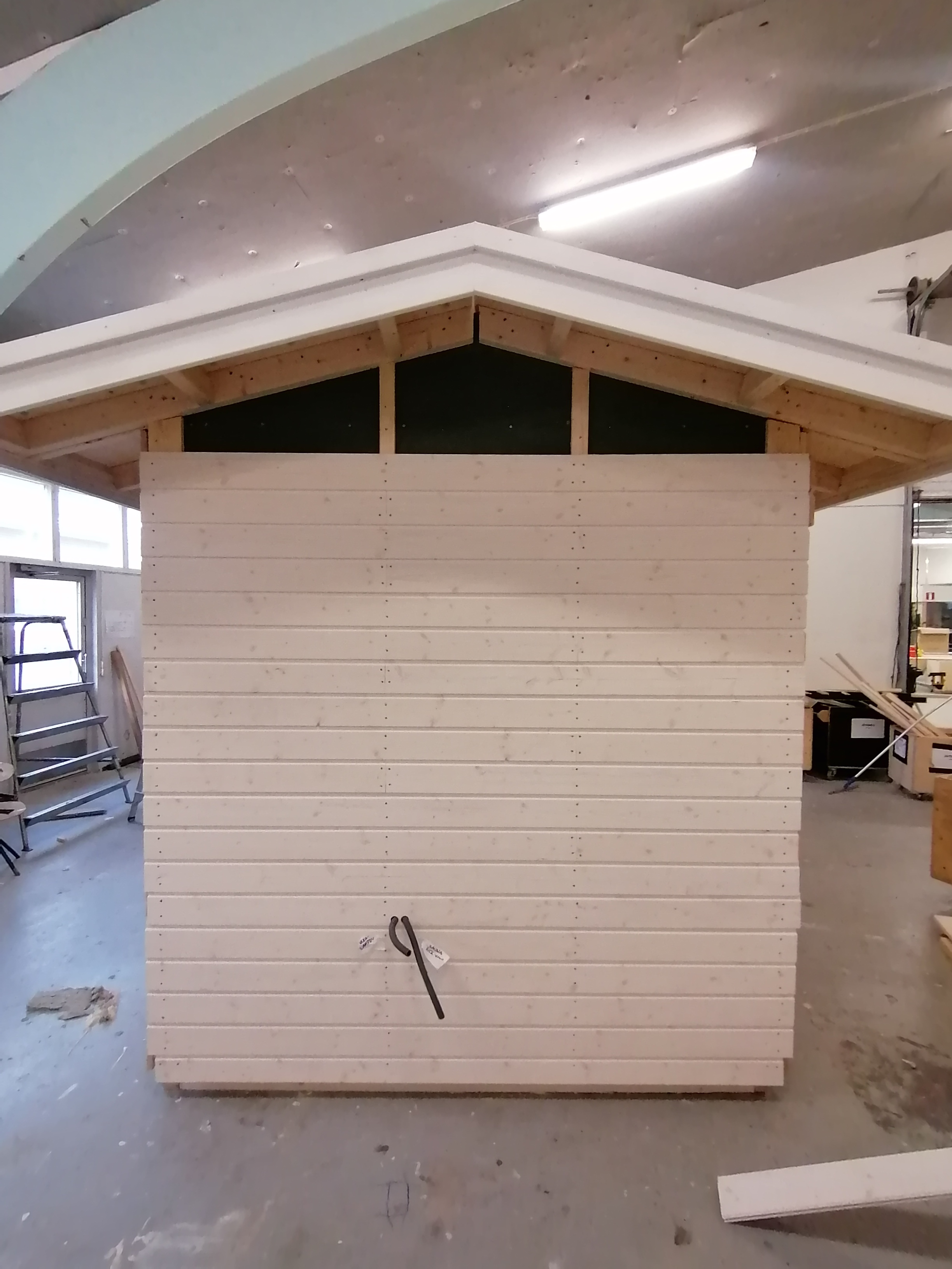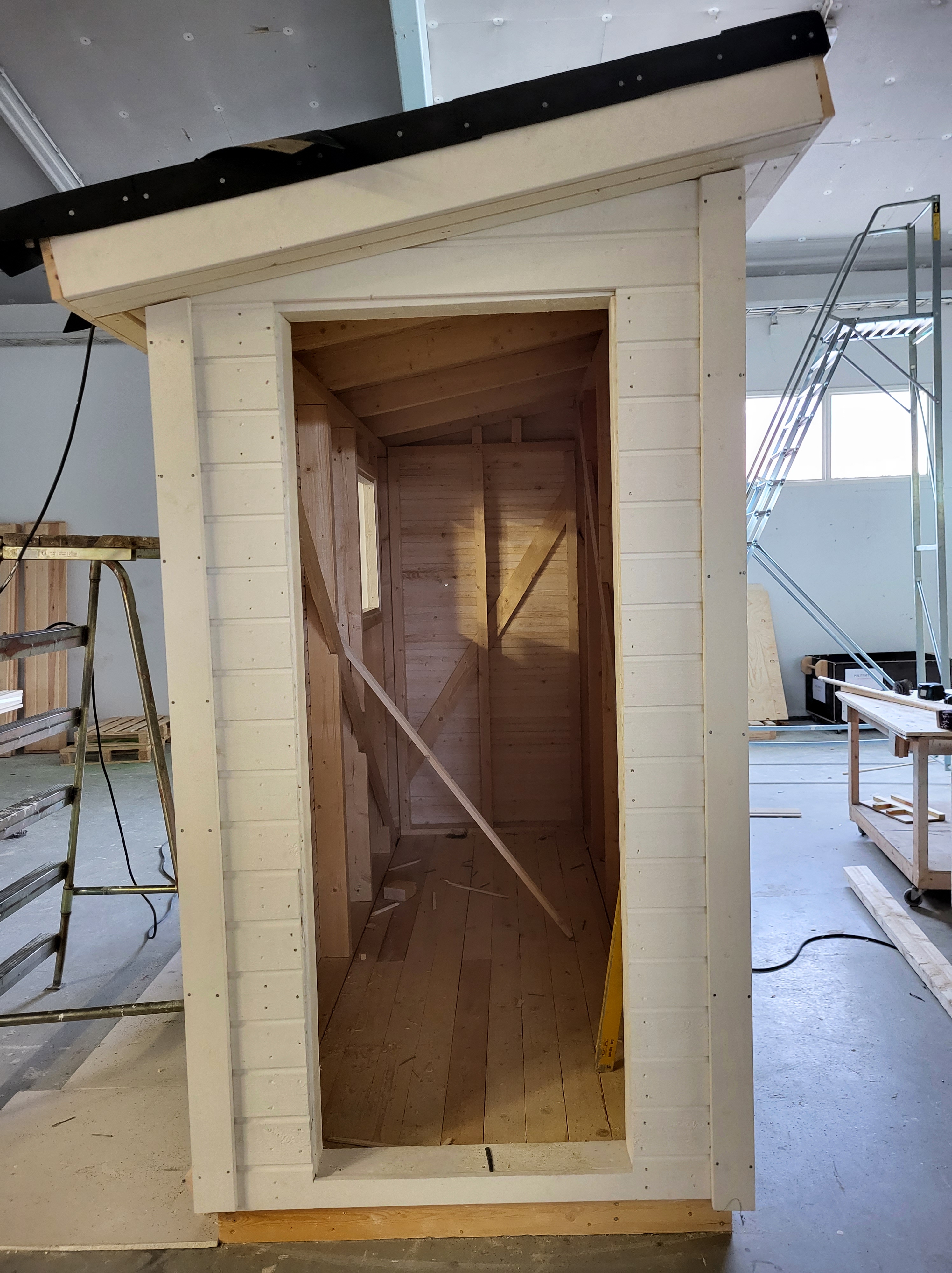 Varastoja, sauna, leikkimökki, roskakatoksia, koirankoppi, metsästäjien kyttäyskoppeja ja postilaatikkotelineitä.