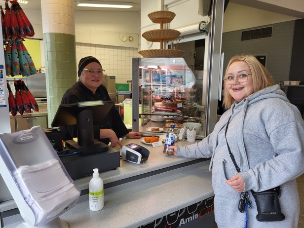 Kahviossa myynnissä juomia, sämpylöitä, puuroa, patonkia, leivonnaisia ja muita herkkuja. Myynnissä myös Take away -tuotteita. Tervetuloa!