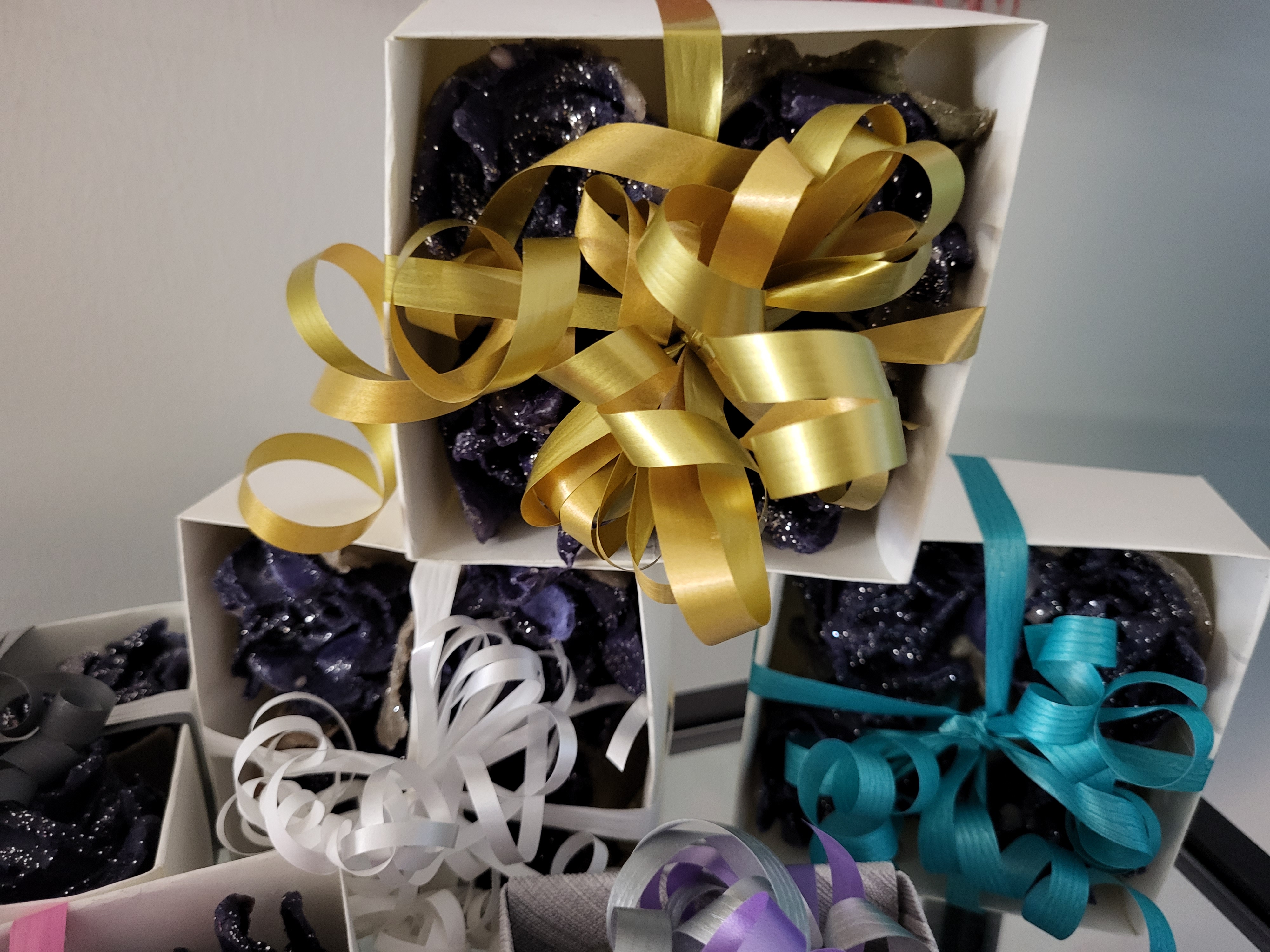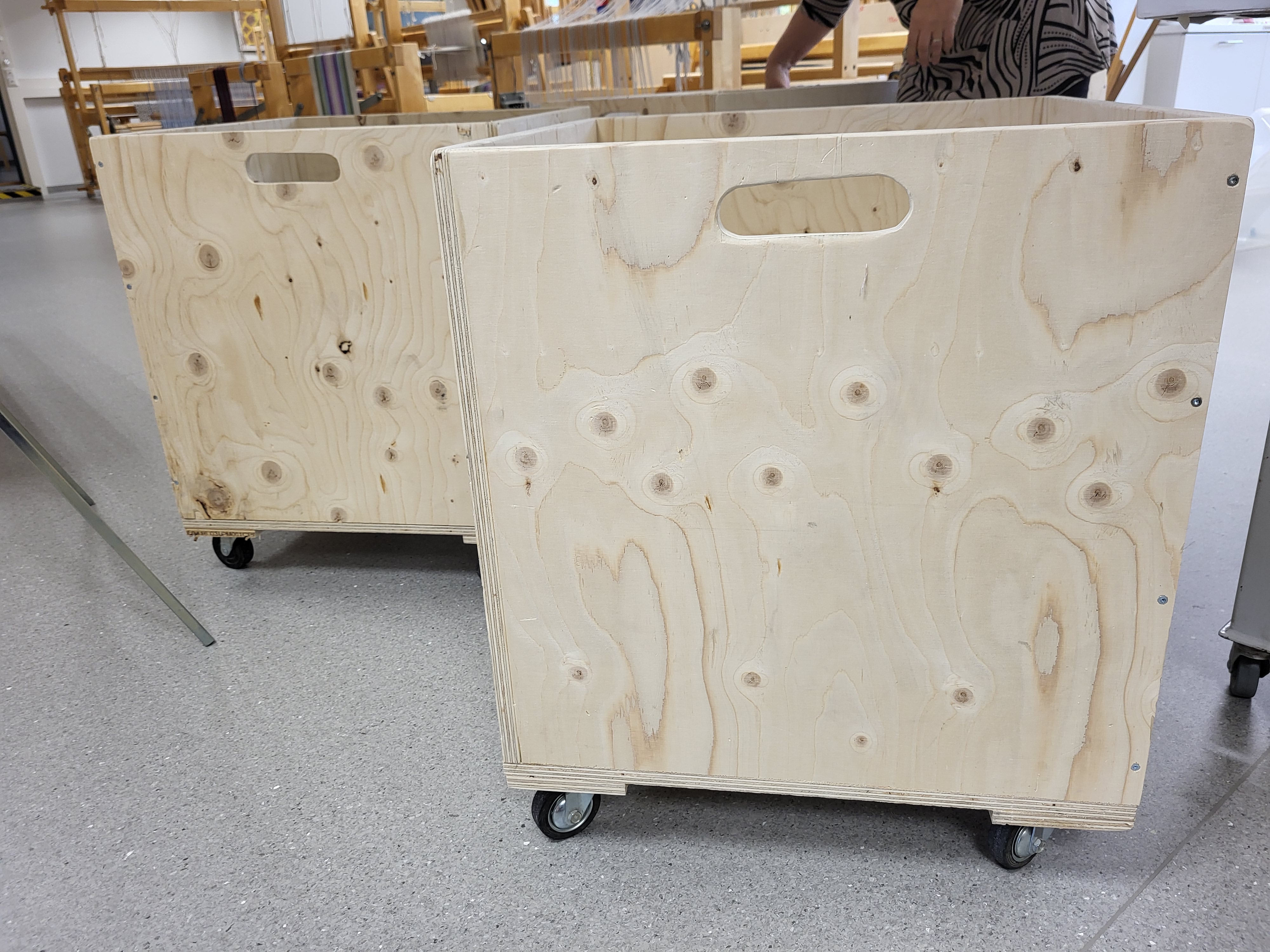 Myynnissä ja tilattavissa taideteollisuusalan valmistamia tuotteita.